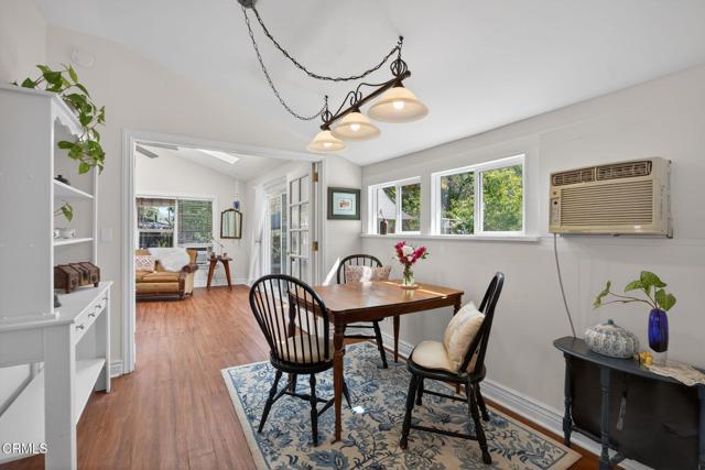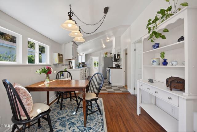 Located in the heart of downtown Ojai, this charming 1938 garden cottage captures the essence of the indoor-outdoor lifestyle that makes Ojai so special.The home offers 3 bedrooms, 2 baths and approximately 1,219 square feet of flexible living space on a beautifully landscaped 7,406 sq ft lot. An inviting front porch welcomes you into light-filled interiors, while the family room addition opens seamlessly to the gardens beyond.Step outside into a private, fully fenced garden sanctuary filled with seasonal color and fragrance purple iris, orange marigolds, flowering jasmine, fruit trees, and vegetable beds. A graceful shade tree with a swing and a seasonal water feature create a peaceful setting for outdoor living.Mountain views frame the property, and a detached workshop (120 SQ FT)offers space for creative pursuits, hobbies, or storage.Located in a quiet country neighborhood just moments from downtown Ojai's shops, restaurants, farmers market and trails.