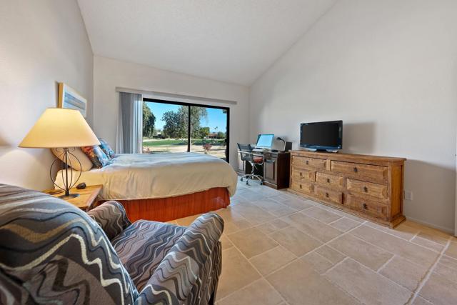 Located in the prestigious Palm Desert Resort Country Club, 40660 La Costa Circle East is a phenomenal opportunity to own one of the best floorplans in the Resorter, two-bedroom, two-bathroom condominium offering the highly regarded Vintage floorplan with direct golf course views. This single-level end unit combines functional design with modern updates and abundant natural light, creating an inviting, move-in-ready residence. High ceilings and expansive NEW windows/sliders in the living and dining areas frame unobstructed fairway vistas, while a north/east-facing patio extends the living space outdoors, providing a private setting to enjoy serene views of the course and desert landscape. The kitchen has been tastefully updated with new cabinetry, countertops, and tile flooring, offering a contemporary and practical workspace that flows seamlessly into the dining and living areas. The primary suite includes direct patio access, a spacious closet, and an en-suite bathroom with a walk-in shower. The secondary bedroom is located on the opposite side of the unit for privacy and is served by a full guest bathroom. Additional features include tile flooring throughout the main living spaces, and an attached garage. Set on a quiet interior circle, the home provides convenient access to community pools, spas, and tennis and pickleball courts while maintaining a sense of privacy. Palm Desert Resort Country Club is a gated community with 24-hour security, an 18-hole championship golf course, and a well-managed HOA covering cable, internet, exterior maintenance, and landscape care. With its thoughtful updates, convenient central location, and prime golf course setting, 40660 La Costa Circle East offers a refined Coachella Valley lifestyle ideal for full-time living, seasonal retreats, or investment ownership.