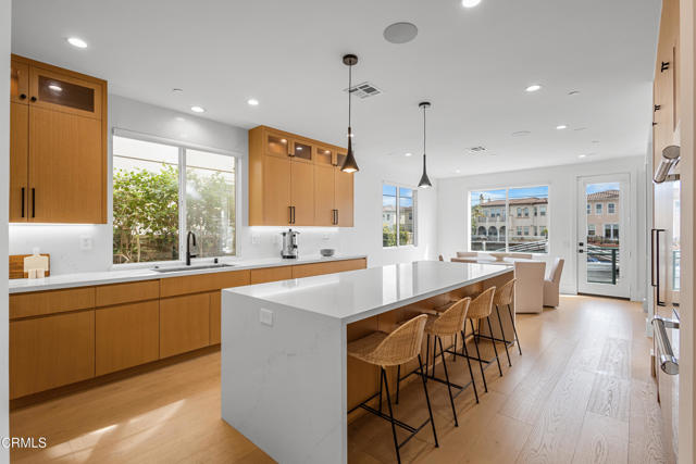 Welcome to Westport at Mandalay Bay, one of Oxnard's most desirable waterfront communities in Ventura County. This beautifully renovated marina home offers a private 35-foot boat dock easement, eastern water exposure, and exceptional privacy with no public sidewalk behind the property. Enjoy the ultimate coastal lifestyle with direct boating access to Channel Islands Harbor and close proximity to Seabridge Marina, shops, restaurants, and nearby beaches.The backyard is designed for entertaining and relaxation, featuring a cantilevered Trex deck that maximizes outdoor living space while overlooking tranquil water views. It is the perfect setting for dining al fresco, hosting gatherings, or simply enjoying the peaceful marina setting. Scenic walking and biking paths run along the waterfront, and the beach is located just one mile away.Inside, the home offers a bright, modern, and sophisticated interior with wide-plank white oak flooring, custom cabinetry, smooth wall finishes, solid core doors, and detailed base and case moldings throughout. The gourmet kitchen is equipped with premium Thermador appliances, a quartz center island, and built-in single-door refrigerator and freezer, creating an ideal space for cooking and entertaining.The home features four spacious bedrooms, each with its own en-suite bathroom, including a convenient downstairs bedroom that is closet-ready. A large upstairs loft provides flexible living space perfect for a home office, den, or media room. The primary suite serves as a private retreat with a sitting area, walk-in closet, and a private deck overlooking the channel and surrounding mountains, with occasional snow-capped peaks visible during winter months. The spa-inspired primary bathroom includes a wet room with soaking tub, rain shower, handheld sprayer, and elegant black quartz and porcelain finishes.Additional highlights include a direct-access garage with epoxy flooring and built-in cabinetry, providing excellent storage for all your coastal lifestyle needs. Located just minutes from Seabridge shopping and dining, Hollywood Beach, Silver Strand Beach, and Channel Islands Harbor, this exceptional property offers a rare opportunity to own a luxury waterfront home with a private boat dock in Westport.