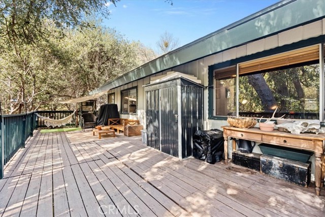Charming and full of character, this 2-bedroom, 1.5-bath home offers a comfortable layout and a true mountain feel just minutes from Lake Gregory. Inside, you’ll find warm wood flooring and a spacious living room featuring high beamed ceilings, a brick fireplace, and built-in bench seating—creating a cozy yet open space that stands out. The living area flows into the kitchen and dining space, which opens directly to a large private deck, perfect for entertaining or relaxing outdoors. Recent updates include fresh interior paint and a new water heater, making the home move-in ready. The adjacent vacant lot provides added privacy and a more open, peaceful setting—a rare bonus for the area. One of the standout features of this home is the exceptional parking—something that’s hard to find on the mountain. Enjoy the convenience of being able to pull right up to the front door, making unloading groceries, luggage, or weekend gear quick and easy. Whether you’re looking for a full-time home, weekend escape, or investment opportunity, this property offers comfort, charm, convenience, and a prime location close to shopping, dining, and outdoor recreation at Lake Gregory.