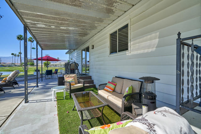 Beautifully updated golf course home in desirable Tri Palm Estates & Country Club! Ideally situated on an oversized private flag lot overlooking the 17th and 18th holes and tranquil pond, this spacious residence offers panoramic mountain and fairway views.Step inside to find a bright, open layout enhanced by designer paint, tasteful furnishings, and thoughtful upgrades throughout. Recent improvements include a new refrigerator, tasteful furnishing & fixtures, washer/dryer, new air conditioner and furnace--providing comfort and peace of mind. The functional utility room features a stacked washer/dryer along with ample additional storage.Enjoy seamless indoor-outdoor living with a wraparound patio--perfect for relaxing or entertaining while taking in the stunning golf course and mountain scenery. The property also includes an attached garage, separate golf cart garage/workshop, and abundant guest parking.Located just moments from the community entrance and clubhouse, this home offers both privacy and convenience. Tri Palm Estates & Country Club is a vibrant 55+ community where you own the land, and ownership includes unlimited golf for two deeded owners on both the 18-hole and 9-hole courses, as well as access to a putting green, pools and spas, tennis, pickleball, basketball, shuffleboard, and a full-service clubhouse with dining, bar, billiards, banquet space, and more.Conveniently close to shopping, dining, entertainment, and major amenities, with easy access to I-10 and nearby Rancho Mirage, Palm Desert, and Palm Springs. Clean, furnished, and move-in ready--an exceptional value for golf course living!