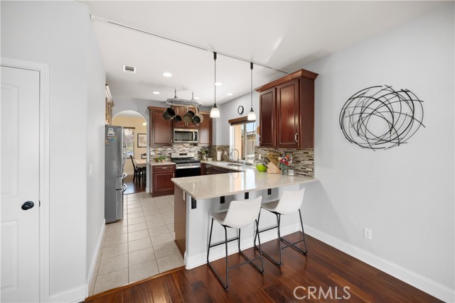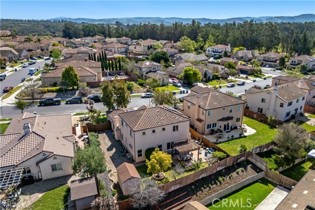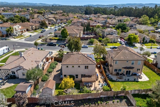 Mediterranean-inspired residence in the highly desirable Providence Landing community. Thoughtfully designed to offer a refined blend of comfort, flexibility, and style, this property is ideally positioned to embrace the Central Coast lifestyle, with convenient access to surfing at Jalama Beach, hiking at La Purisima Mission State Historic Park, golf at the Mission Club, and renowned wine tasting in the Santa Ynez Valley. Situated on an 7,405 square foot lot, the residence offers 2,320 square feet of living space, featuring four bedrooms—including primary suites on both levels—and four bathrooms, ideal for multi-generational living and guests. The inviting floor plan balances formal and casual spaces, enhanced by engineered wood flooring throughout much of the main level and an abundance of natural light. The living room is centered around a gas fireplace with a pre-cast concrete surround, creating a warm and welcoming setting, while the formal dining room is highlighted by a hanging fixture, ideal for gathering around the table with friends. The comfortable family room features built-in media cabinetry and opens to the rear yard, creating a seamless indoor-outdoor connection. Perfect for creating your favorite recipes, the gourmet kitchen showcases quartz countertops with a mosaic backsplash, a ceiling-mounted pot rack, and a package of quality appliances including a Whirlpool five-burner gas range, KitchenAid dishwasher, Whirlpool microwave, and LG smart refrigerator. A breakfast bar with attractive pendant lighting provides a casual dining space. The private main level primary suite offers a walk-in closet and a luxe bath with soaking tub, tiled shower, and dual sink vanity with a mosaic liner detail. The upper level includes a second primary suite with a walk-in closet and bathroom with soaking tub, tiled shower, and dual sink vanity, along with two additional secondary bedrooms conveniently located adjacent a well-appointed full bath. Additional highlights include window coverings, a laundry room with Maytag washer/dryer, upper and lower cabinetry, and a sink, as well as a two-car garage with 220-volt service and an EV charger. The rear yard features a stamped concrete patio, portico, lush lawn, fruit trees, flagstone walkway, and a garden shed, offering an amazing setting for weekend BBQs and relaxation. Community amenities include a clubhouse, pool and spa, tennis courts, multi-use sports fields, playgrounds, walking paths and fitness stations.