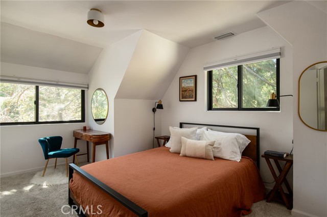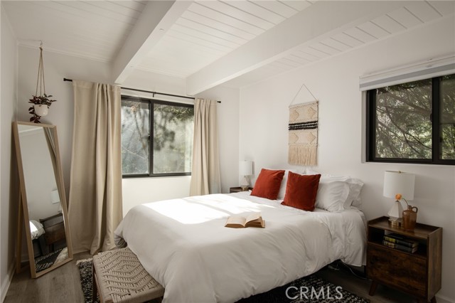 Tucked into the trees of Lake Arrowhead, this beautifully reimagined mountain retreat blends modern sophistication with warm, inviting charm—and includes coveted Lake Rights. Thoughtfully updated from top to bottom in 2022, the home offers a seamless balance of style and comfort, making it ideal as a full-time residence, weekend escape, or a continued high-performing short-term rental. Clean architectural lines, abundant natural light, and cozy, curated finishes create a space that feels both elevated and effortlessly livable. Perfectly positioned, the home is a quick drive to the Village and a short *stroll* to the shops in Cedar Glen, Miller's Landing, Mountain Coffee Co and lakeside trails, where golden-hour sunsets become part of your everyday routine. And only a few minutes from Lake Arrowhead Village! Behind the scenes, extensive upgrades provide both peace of mind and modern convenience. The home features a new roof (2022), rain gutters, central air conditioning, a fully upgraded electrical panel with improved wiring, and an EV charger. Nearly every detail has been refreshed, including all new windows, fresh exterior paint, new washer and dryer, updated landscaping, a new water heater, and a newly installed sewer line extending from the house to the street. Adding to its rarity and appeal is a detached two-car garage—an uncommon luxury in Lake Arrowhead—offering ample space for parking, storage, or creative use. With its prime location, strong rental history, and turn-key condition, this property is a standout opportunity to enjoy the very best of mountain living while benefiting from immediate income potential.