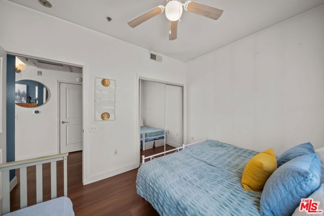 Highly desirable 2 Bed/ 2 Bath unit ideally located on the top floor of the beautiful Laurel Bliss building. Thoughtfully designed with spacious contemporary floor plan, this residence is enhanced by soaring ceilings and natural light. It features a well-appointed kitchen that flows seamlessly into the dining and living areas, wonderful for everyday living and entertaining. The primary bedroom offers a large closet and a versatile nook-ideal for a workspace or reading corner. A convenient pantry closet houses and in unit stacked washer and dryer, along with generous storage space. Residents also have access to a fitness center, conveniently located in the lobby. They also enjoy access to a remote controlled garage with two tandem parking spaces and additional guest parking. The buildings open air corridors frame a tranquil central courtyard, while the rooftop patio provides sweeping views of the valley and a spectacular vantage point for fourth of July fireworks. Homeowners association dues include trash, and recycling services, hot water, sewer, and master insurance policy. Perfectly positioned in the heart of North Hollywood you are just minutes from NoHo West's vibrant shopping, dinning, and entertainment destinations, as well as an array of cafes, theaters, parks, and grocery options. With easy access to the 101 and 170 freeways, it offers a seamless blend of everyday convenience with a vibrant connected lifestyle.
