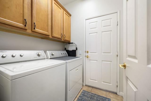 Do not miss this 2 Bedroom/2 Bathroom PLUS A DEN/OFFICE/FLEX ROOM popular ST. Maarten model! This particular home has an oversized lot, allowing for a large, lush and lovely outdoor experience. In addition to the lush landscaping and patio with an overhang, is an outdoor spa. Perfect for those desert evenings. The home is located in close proximity to Donny Lake and to the Lakeview Clubhouse ( pool/gym). Tile flooring runs throughout the main living areas. The Great room features a gas fireplace surrounded by stylish stacked stone. The kitchen has granite countertops, under-cabinet lighting, stainless steel appliances, a large pantry and pull-out shelving in the cabinetry. The THIRD ROOM is the BONUS! It has beautiful accordion doors for privacy and plantation shutters. The relaxing primary suite includes a bay window overlooking the beautiful yard, a media nook, a large walk-in closet and an en-suite bathroom with a sitting vanity and glass-enclosed shower. The guest bedroom also has a walk-in closet and shutters. The guest bathroom, with easy access from the entire home, features a tub/shower combination. Additional highlights include an indoor laundry room with built-in storage, a two car garage with ample storage and an AC installed in 2021.Come see what Desert Living offers in this elegant home.