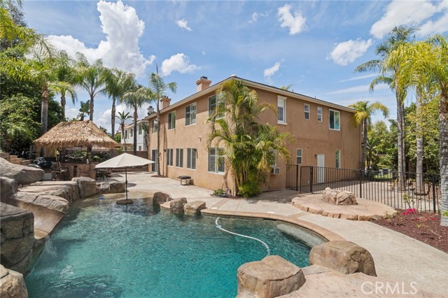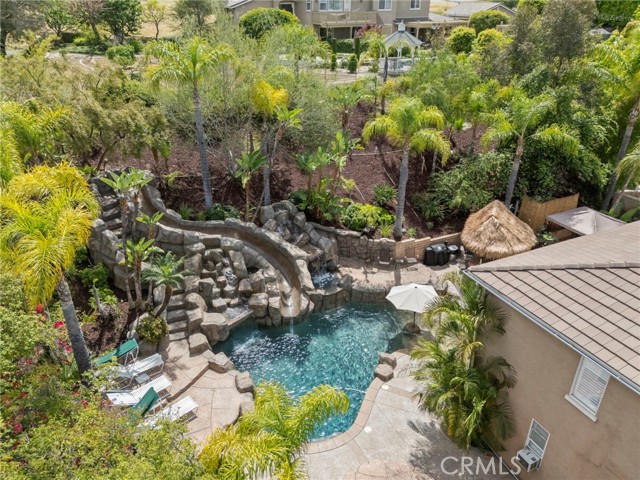 ATTACHED CASITA| RESORT STYLE POOL| ITALIAN MARBLE COUNTERTOPS| UPGRADED KITCHEN AND BATHROOMS Majestic Two-Story Executive Residence with a Private Attached Casita and Caribbean-Inspired Backyard! Perfectly situated on a sprawling 0.32-acre lot in a highly sought-after community, this 5-bedroom, 3-bath, approximately 3,800 sq ft home delivers luxury, versatility, and resort-style living. From the moment you arrive, you’re captivated by lush tropical landscaping, towering palms, a classic stucco exterior, and stunning mountain views. Inside, the home is both grand and inviting, featuring soaring two-story ceilings, rich wood flooring, elegant wainscoting, a wrought-iron staircase, and a beautifully flowing open floor plan designed for modern living. The gourmet kitchen is a true centerpiece, elevated with exquisite Italian marble countertops, premium stainless-steel appliances, a farmhouse sink, custom soft-close cabinetry, a 6-burner gas range, wall oven, convection microwave, and an expansive center island perfect for gathering and entertaining. A standout feature of this home is the attached Next Gen-style casita, designed as its own private living space. Complete with a full kitchen, bathroom, living area, bedroom, private patio, and separate entrance, it offers incredible flexibility for multi-generational living, long-term guests, or potential income opportunities. Step outside to your own tropical retreat. The backyard is designed for unforgettable entertaining, showcasing a sparkling pool with a dramatic stone waterfall, water slide, multiple lounging areas, and a fully equipped outdoor kitchen with BBQ, bar seating, and a tiki-style cover. The oversized primary suite offers a serene escape with a private sitting area, cozy fireplace, plush carpeting, plantation shutters, generous closet space, and a luxurious en suite bath featuring a soaking tub, separate shower, dual vanities, and a dedicated makeup station. Additional highlights include spacious secondary bedrooms, well-appointed guest bathrooms, an indoor laundry room, and a 2-car garage. Located near top-rated schools, shopping, dining, and commuter access. No HOA and low taxes. You need to experience this exceptional home in person.