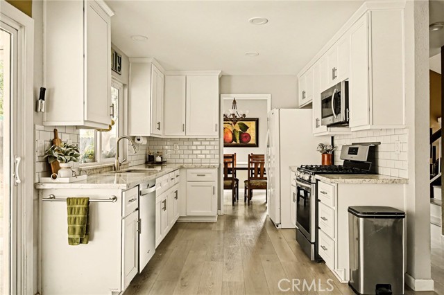 Beautiful well-maintained 4-bedroom home in La Loma Hills. Vaulted ceiling in living room. Kitchen and all three bathrooms have been remodeled. Downstairs primary bedroom. Dining room and family room with fireplace. Spacious backyard with large shed (with electrical outlets) and dog run. Artificial turf in front yard. Dual pane windows. Mountain views. New water heater. Front porch and covered patio in back. RV parking. Fridge, washer and dryer are all staying. No HOA! Low tax rate (1.24%)! Property is NOT in a high fire zone per the Natural Hazards Disclosure. Close to 215, 10, and 91 Freeways. This is a wonderful opportunity - don't miss it!