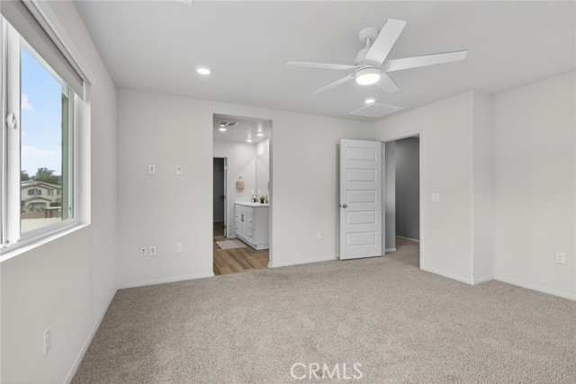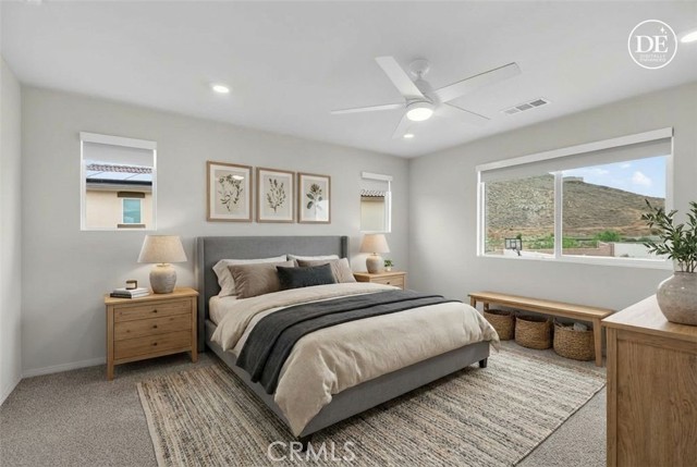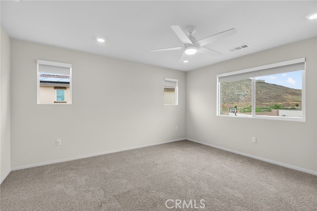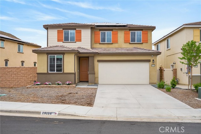 Welcome to this move-in ready 2024 energy-efficient home located in a quiet cul-de-sac at Highland at Nichols Ranch. Situated on a premium view lot and featuring OWNED SOLAR PANELS and RV Potential. This modern home delivers comfort, performance, and long-term savings. The thoughtfully designed open floor plan is filled with abundant natural light and includes a FIRST-FLOOR BEDROOM with a full bathroom, ideal for guests, multigenerational living, or a home office. Interior upgrades showcase crisp white cabinetry, white and gray speckled granite countertops, gray-toned Lighthouse EVP flooring, and stylish speckled carpet in bedrooms and upstairs, creating a clean, modern aesthetic throughout. Retreat to the expansive primary suite, offering generous space to relax see the mountain view and unwind. All secondary bedrooms are privately positioned in separate hallways, providing privacy and quiet. A spacious UPSTAIRS LOFT is perfect for studying, game nights, or relaxing family time. Step outside to an OVERSIZED BACKYARD, a blank canvas ready for outdoor entertaining, a pool, play space, or garden design. This energy-efficient home features multi-speed HVAC systems, Tesla Charger in garage, spray foam insulation, and high-performance air filtration, designed to support LOWER UTILITY COSTS, improved indoor air quality, year-round comfort, and peace of mind. Conveniently located near schools, shopping, dining, parks, and major freeways, this home combines efficiency, style, and location.? Solar panels included—no lease, no extra cost. Don’t miss this exceptional, modern, energy-efficient home.
