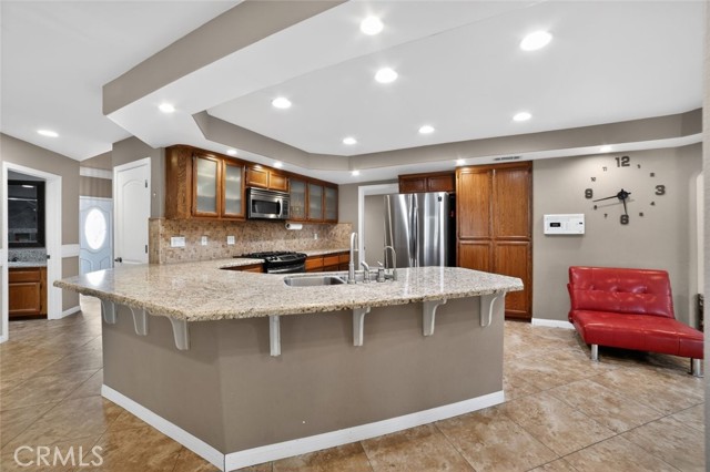 Expansive Victorville residence offering 4650 sq ft of living space with 6 bedrooms and 3 bathrooms, designed for flexibility, comfort, and functionality. This spacious home features multiple living areas with a layout that supports both everyday living and larger gatherings. The interior showcases a blend of updated flooring and generously sized rooms filled with natural light. Several living spaces provide options for a formal living room, family room, and additional flex areas, including a fireplace feature that adds warmth and character. The kitchen is centrally positioned and equipped with ample cabinetry, a large center island, and extensive counter space, making it ideal for cooking and hosting. Bedrooms are well distributed throughout the home, offering privacy and versatility. Each room provides comfortable space with closets and natural light, while the bathrooms are designed with practical layouts and include a variety of features such as dual vanities, a soaking tub, and separate shower areas. The backyard offers a spacious outdoor setting with a pool, mature landscaping, and a covered patio area that enhances usability year round. The combination of lawn space and hardscape creates multiple areas for relaxation and outdoor enjoyment. Additional highlights include a spacious driveway, attached garage, and dedicated laundry area, adding to the overall convenience of the property. Located in an established Victorville neighborhood, this home offers size, versatility, and a layout that accommodates a wide range of living needs.