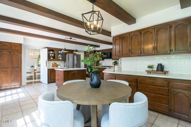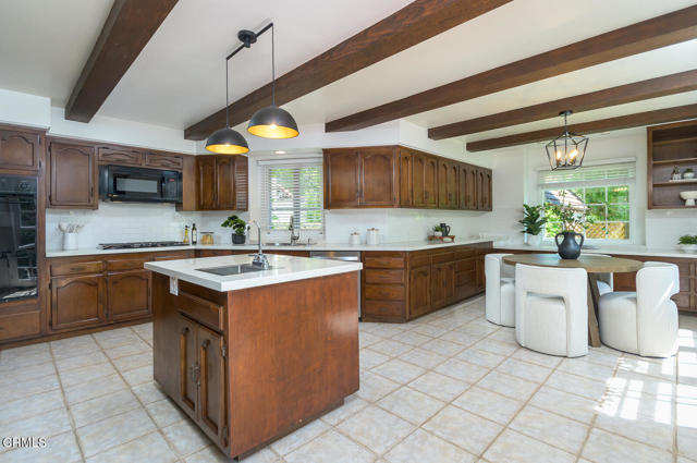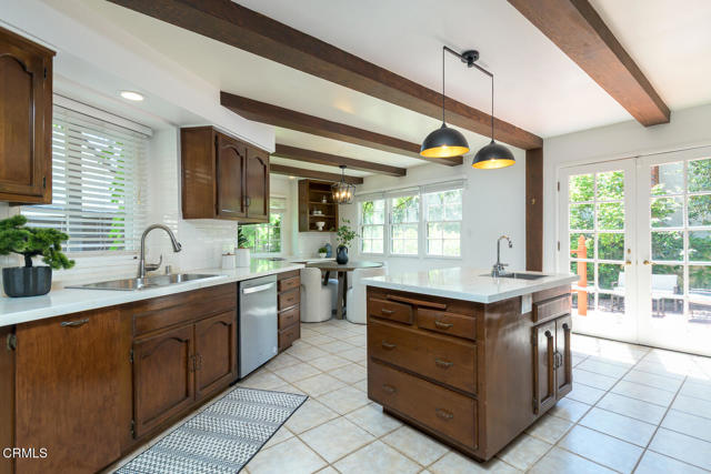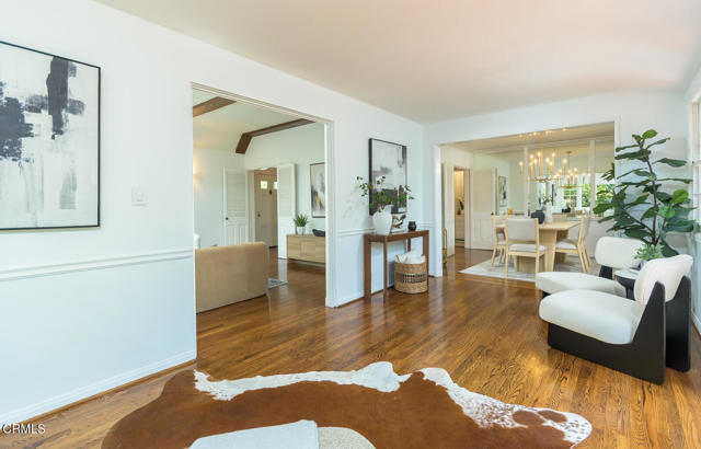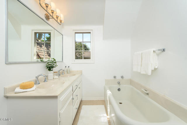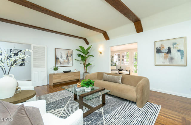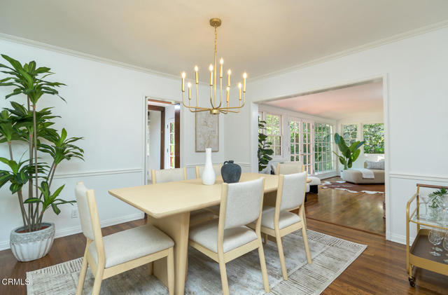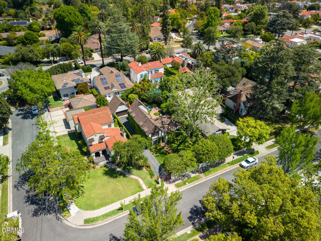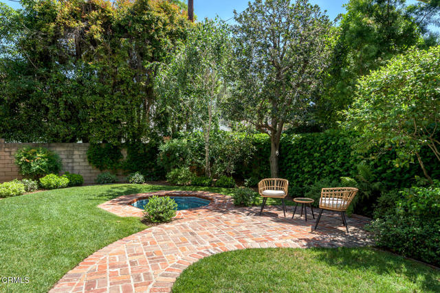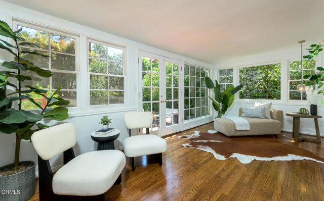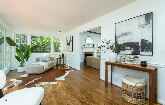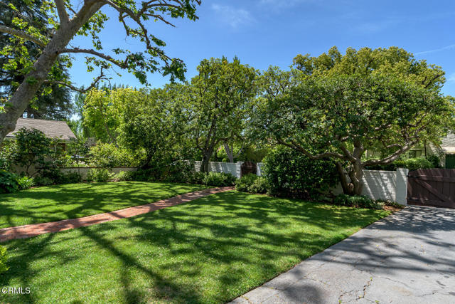 Charming English Tudor-style home in San Marino's Mission District with a sunlit layout and seamless indoor-outdoor flow. Set behind a gated brick wall, the property features a front lawn and a gently curving brick pathway leading to the entry, where mature landscaping creates a warm and inviting approach. Inside, a formal foyer opens to a spacious living room anchored by a fireplace, with a large picture window overlooking the front lawn and smaller windows flanking the fireplace that bring in natural light and architectural balance. The living room flows into a sunroom/family room wrapped in windows overlooking the backyard, where French doors and surrounding windows span much of the wall, bringing in natural light and views of the greenery outside while opening directly to the yard for a seamless indoor-outdoor connection. The formal dining room connects to both the sunroom and kitchen, offering an open yet defined space well suited for both everyday living and entertaining. The kitchen features a center island, abundant cabinetry, and a spacious breakfast nook with a built-in desk, shelving, and drawers, providing both functionality and flexible workspace. French doors from the kitchen lead to steps down to the backyard, reinforcing the home's natural connection between interior spaces and the outdoor setting. A main-level bedroom is located off the foyer, along with a three-quarter bath that also connects to the laundry room. The laundry room provides direct access to the driveway and a convenient connection to the kitchen, enhancing everyday ease. The driveway extends toward the rear of the property to a detached two-car garage, positioned within close proximity to the home. Upstairs, a window at the landing brings in natural light and a view of the driveway, creating a bright and welcoming transition to the upper level. A secondary bedroom is positioned to the left, with a hallway bathroom featuring dual sinks and a soaking tub to the right. The primary suite is located at the end of the hall and includes a bathroom with dual sinks, a separate shower and a soaking tub. The backyard features mature landscaping, open space, and an in-ground spa, offering a private and inviting outdoor setting for relaxation or casual gatherings. A home that blends classic character with everyday comfort in a desirable San Marino setting.