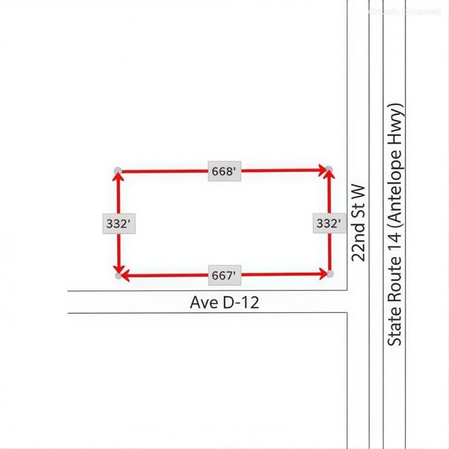 A 668' x 332' flat rectangular land lot located at the corner of Ave D-12 and 22nd St W, in close proximity to State Highway 14.